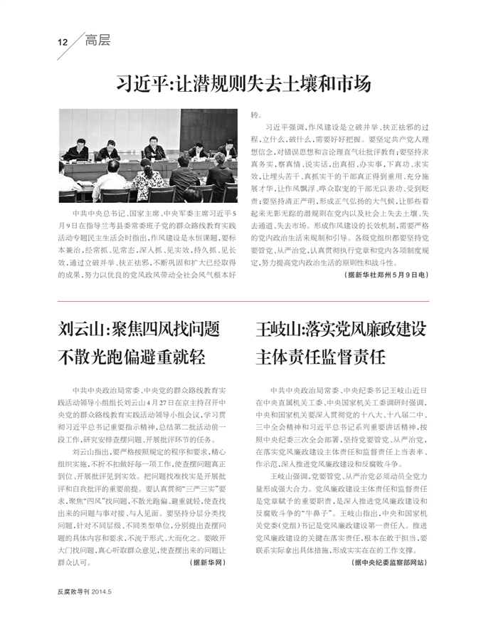 习近平:让潜规则失去土壤和市......王岐山:落实党风廉政建设主体......刘云山:聚焦四风找问题不散光......