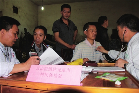 近日,庆元县为方便外出群众办事,要求各乡镇积极到异地开展上门“送服务”活动,做到“零距离”服务群众。5月14日,百山祖镇联合镇卫生院到龙泉市剑池街道南秦社区,为镇里在龙泉务工的村民体检,受到群众欢迎。邝广春摄 作者单位:庆元县委组织部