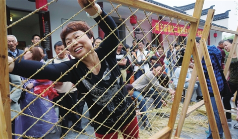 5月17日,海宁市周王庙镇在云龙村举行别开生面的蚕俗文化节活动,来自该镇13个村的蚕农们,在“织蚕网”、“裹蚕汛粽子”比赛中一显身手。据悉,云龙村是全国蚕桑生产基地、浙江省农业厅所属农科院、浙江大学等单位的科技试验基地。王超英摄 作者单位:海宁日报