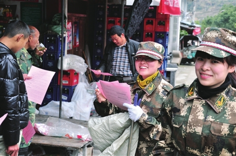 今年3月,丽水市档案局成立“五水共治”女子突击队,先后数次奔赴景宁县、缙云县联系村等地,对河岸多年堆积的垃圾进行清理。朱悦华摄 作者单位:丽水市档案局