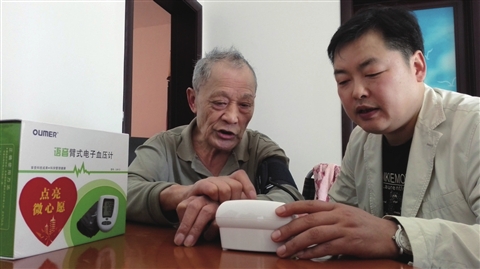 兑现“微心愿” 今年以来,遂昌县开展在职党员进社区“点亮微心愿·共筑中国梦”主题活动,7000余名机关党员“点亮微心愿”1万余次,兑现群众“微心愿”5000余件。图为该县组织部机关党员为社区群众送去血压计。/陈永摄 作者单位:遂昌县委组织部