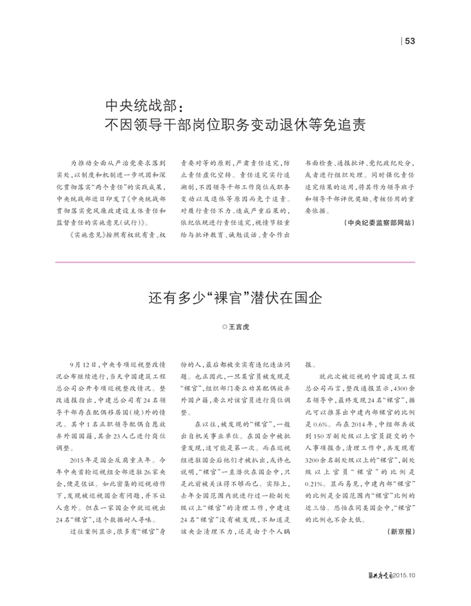 还有多少“裸官”潜伏在国企中央统战部:不因领导干部岗位......