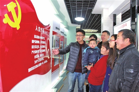 党建馆里话发展 2015年12月10日,湖州市吴兴区埭溪镇组织部分党员干部参观刚刚建成的镇党建展示馆。大学生宣讲员向参观者介绍了埭溪镇“十二五”期间党建工作和经济社会发展成就。/邓德华 摄 作者单位:吴兴区埭溪镇政府