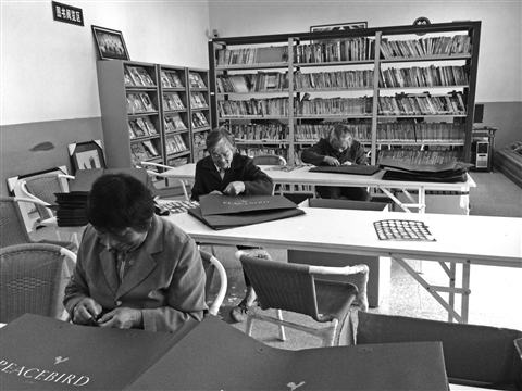 得胜村附近小家电和印刷企业比较多,因此产生了一项“穿商标”的工作,就是把产品检验合格证、商标和产品说明书,用细绳穿在一起,工作简单机械。这项工作企业乐意让附近村庄的老年人在家做。这样既节约场地,老年人的工资要求又相对低些。记者在该村采访时,看到该村67岁的蔡菊芳老人正在“穿商标”。老人说:“有空就做做,一天有近30元收入,反正闲着也是闲着,做这个还能防老年痴呆。”