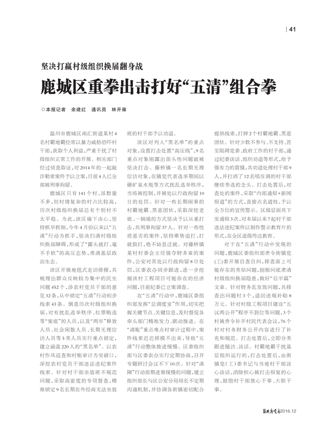鹿城区重拳出击打好“五清”组......