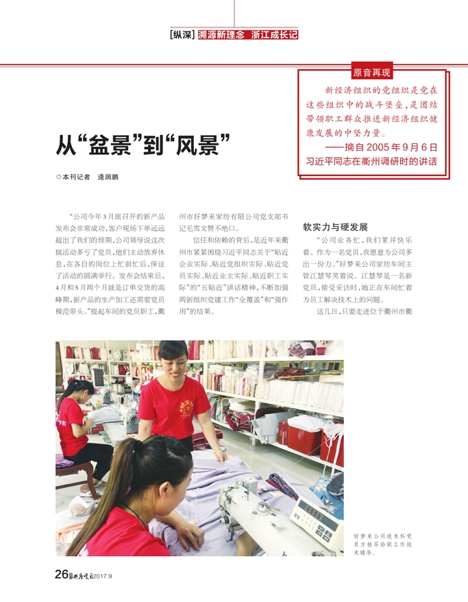 “公司今年3月底召开的新产品发布会非常成功,客户现场下单远远超出了我们的预期,公司领导说这次搞活动多亏了党员,他们主动放弃休息,在各自的岗位上忙前忙后,保证了活动的圆满举行。发布会结束后,4月和5月两个月就是订单交货的高峰期,新产品的生产加工还需要党员模范带头。”提起车间的党员职工,衢州市好梦来家纺有限公司党支部书记毛雪文赞不绝口。