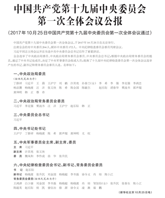 (2017年10月25日中国共产党第十九届中央委员会第一次全体会议通过)