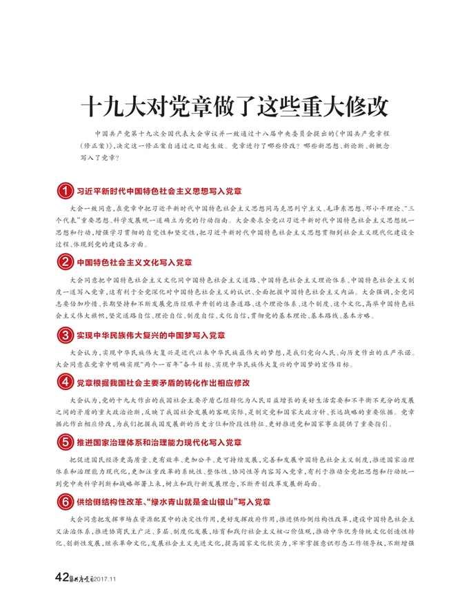 • 42版: 聚焦十九大·党章