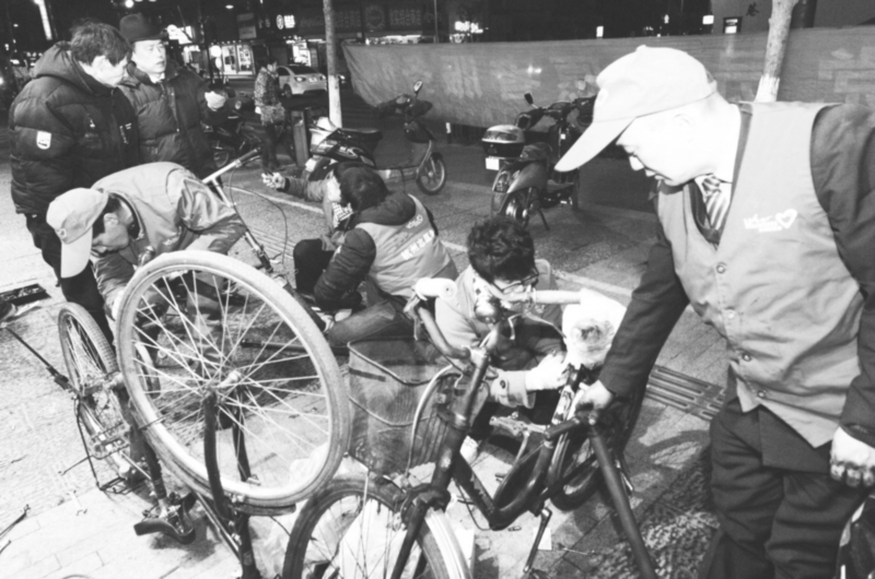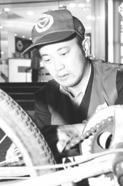 每个周六晚上7点至10点,杭州中山北路百井坊巷叉路口,有一个熟悉的身影肯定会在那里出现:打气、补胎、换胎……他就是杭州公交28路车司机孔胜东,从1986年开始免费为市民修车,这件事他已坚持做了26年,无论刮风下雨,还是节假日,甚至新婚……他都会准时出现在老地方。 1986年3月5日,身为机修钳工的孔胜东,为响应团省委学雷锋、为社会做一件好事的号召,开始为市民免费修理自行车。那一年他23岁。他说:白天修车点很多,晚上几乎没有,所以我选在了晚上设摊服务。刚开始,谁都没想到他会做得这么长久,一直做到今天。 1992年,孔胜东结婚了。新婚的他仍旧按时出现在巷口。他的行为得到了妻子的支持,这一年孔胜东光荣地加入了中国共产党。 2003年,孔胜东的母亲生病住院需要照顾,后来又遇到了非典,邻居、朋友都劝他把修车摊暂时停一停,可他照样坚持。他说:我会一直摆摊。这是我的承诺,不能失信,再辛苦也要坚持。 从2008年开始,孔胜东带了8个徒弟。从此,每个周六的晚上,孔胜东和他的弟子们就会一同出现在老地方。 不仅是修车,在工作中,孔师傅也是热心人:2010年11月11日,孔师傅在他的28路公交车上推出了免费借雨伞、免费阅报、免费提供晕车药等服务,使坐他车的乘客们如沐春风。 1986年3月的孔胜东还是个毛头小伙。/程学武摄 2006年孔胜东在“老地方”修车。 2012年,一个人的坚持早已成了一队人的行动。