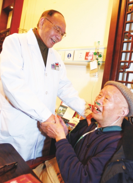 文/通讯员陈雨虹本刊记者李 建黄国中 在浙江医院,金宏义院长胜似明星。 不久前的一天上午,记者随金宏义查房,刚走进住院部,正在散步的病人就围了过来:“金院长这么大年纪还在为我们服务,谢谢啊!”穿梭于各病房,一路上都是这样热情的“粉丝”。当我们走进百岁高龄的王承绪教授病房时,王老教授来了精神,乐呵呵地握住金宏义的手:“你看我身体还好吗?”“你很好,现在天冷,要注意保暖啊!” 这样的场景几乎每天都会上演,貌似平淡无奇,但对于金宏义而言殊为不易——他已年过八十,不久前还因患胰腺癌动了大手术,胰腺、胃、十二指肠、胆囊部分或全部切除。可现在他又和往常一样——每天上班。 2010年5月27日,金宏义查出胰腺癌。当天下午,他去宁波参加了老年医学会议;第二天又赶到上海参加另一个学术会议;回杭州后,当前来为其会诊的专家找到他时,他正在为病人查房,专家吃惊地睁大了双眼:“这简直是不要命啊!” “我当时一心想着把手头的工作尽快做完。”金宏义说。2010年6月10日,他接受手术,术后又做了半年化疗。现在的金宏义面色红润,看起来精神不错。他认为,工作是他迅速康复的法宝:“如果我现在退休,在家里肯定不安心,放不下病人啊。工作着是愉快的!” 从医56年来,金宏义一直忘我地工作。他几乎没有一个完整的休息日,不管是双休日还是节假日,他每天一早就到医院巡视病房。他曾经用计步器计算,每天在病房来回穿梭约3万步。 金宏义常说:“想着病人,才能当好医生”。 有位老同志,便秘数日,那天晚上非常焦躁,但他有些封建意识,坚决不同意女护士为他治疗。于是金宏义用手一点点帮他抠出粪便,让他得以安睡。 有一位农民患者接受射频消融术后一直暗自呻吟。那晚金宏义巡视病房发现后,追问了手术情况,得知病人曾穿刺不顺利,于是马上去诊视,发现病人有气胸存在,及时采取措施,缓解了病人气促。金宏义说:“很多农民患者很质朴,不敢开口叫医生,我们更应该主动关心他们。” 金宏义还主持着浙江省心脑血管病防治研究中心的工作——这是全国 人物名片: 金宏义,1931年出生,浙江医院名誉院长、浙江省心脑血管病防治研究中心主任。曾获全国“五一”劳动奖章、中央保健局特殊贡献奖、全国优秀院长、全国卫生系统模范工作者、省劳动模范、省级优秀共产党员、首届“感动浙江卫生”十大人物等荣誉称号,享受国务院特殊津贴。 成立时间最早、坚持时间最长的心脑血管病防治中心。如今,浙江省已建成各市的心脑血管病防治网络,创建了170万人群的高血压社区“规模化、规范化、信息化”管理模式。这些对降低心脑血管病发病率具有重大意义。 “我的工作很平常,并没有轰轰烈烈的事迹。”金宏义说,“能得到大家的认可,应该感谢组织对我的培养。我要一直工作到干不动为止。”去年建党90周年之际,金宏义交了2万元特殊党费,表达对党组织的感激之情。 病房里,百岁老人王承绪紧紧拉着金院长的手,说着感激的话。心血管康复中心,金院长询问病人的康复情况。 金院长总是不停地在病房之间穿梭。